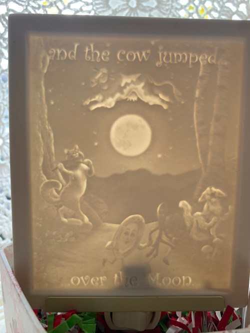 This lithophane light is beyond! It is made of delicate porcelain and is a left over piece from when the shop carried a whole light panel full of various designs. This is backlit by the sun so you can only imagine it’s beauty when plugged in. Regularly 25.00, this last one is a glorious ten bucks and is available now! So wicked cute!