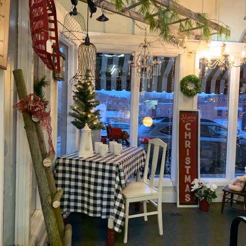 Diamond Antiques and Gifts holiday window looks so inviting.