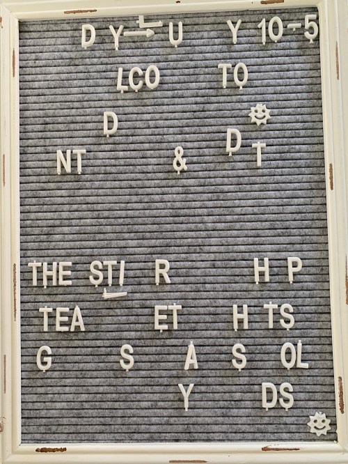 This has been in my shop for a couple of years and placed off to the side out of anyone’s walking path. How on earth anyone could knock this over and literally knock almost every letter out of it? And my business card holder was stolen. Feeling very bah- hum-buggy today. Ugh!